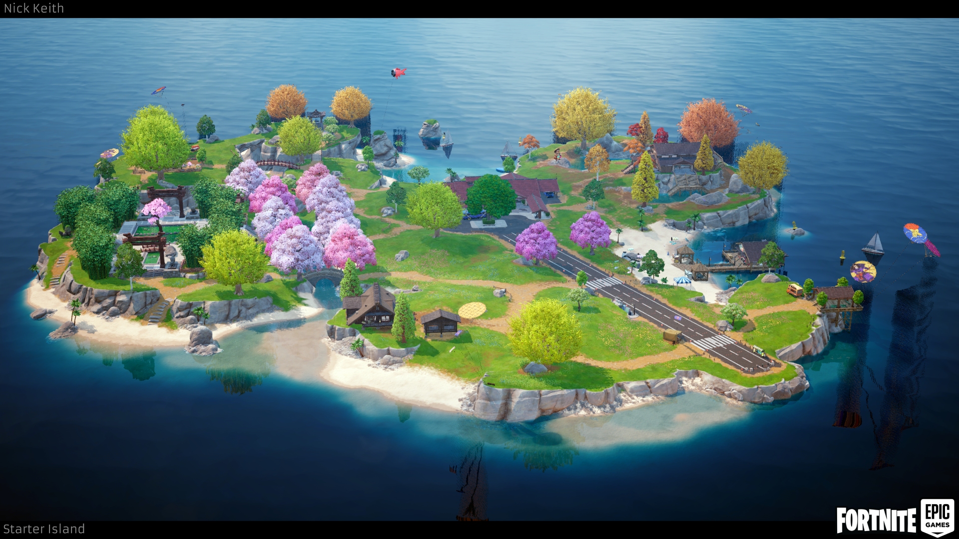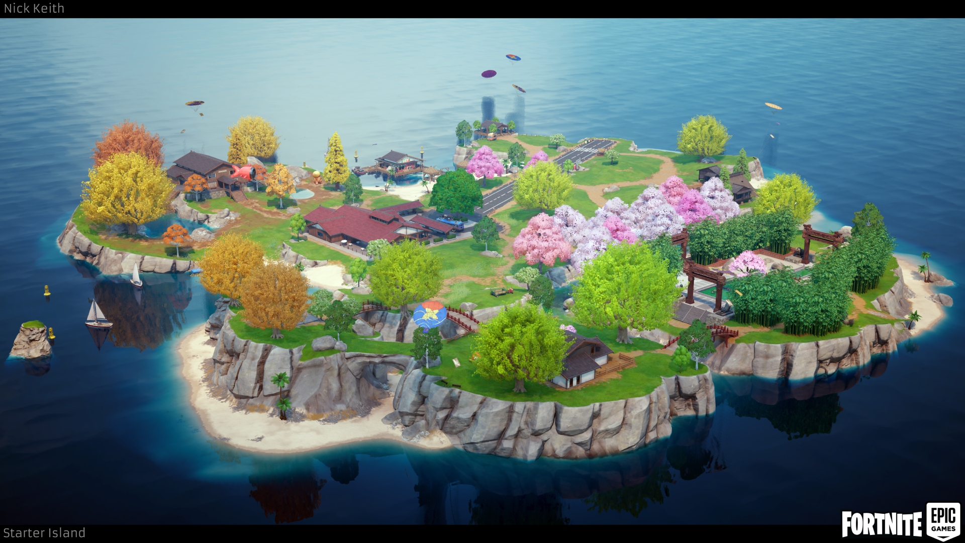 This is Spawn Island for Chapter 6. This island is created to load the players in before each match. Spawn Island is treated more as a playground for players to enjoy as they wait for the match to begin.