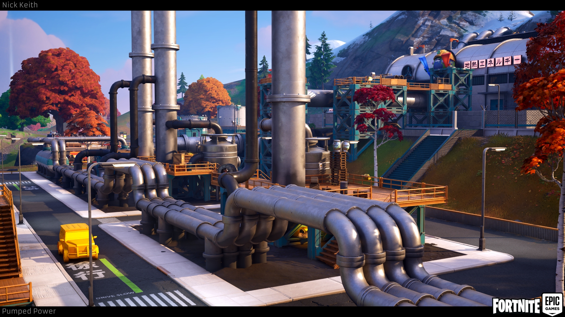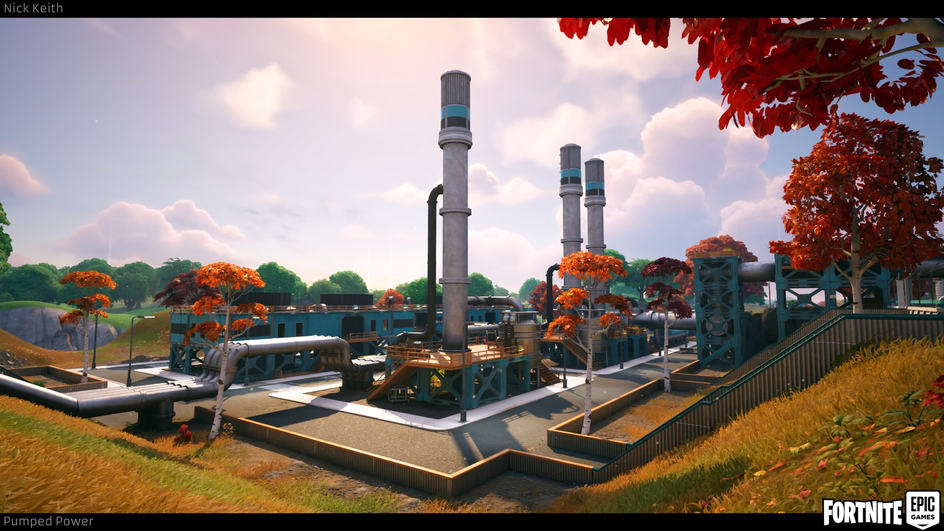 Fortnite: Pumped Power Pumped Power is a large POI from chapter 6 season 1. I took over this POI from another designer at the block out stage and saw it through to its final shipping version.